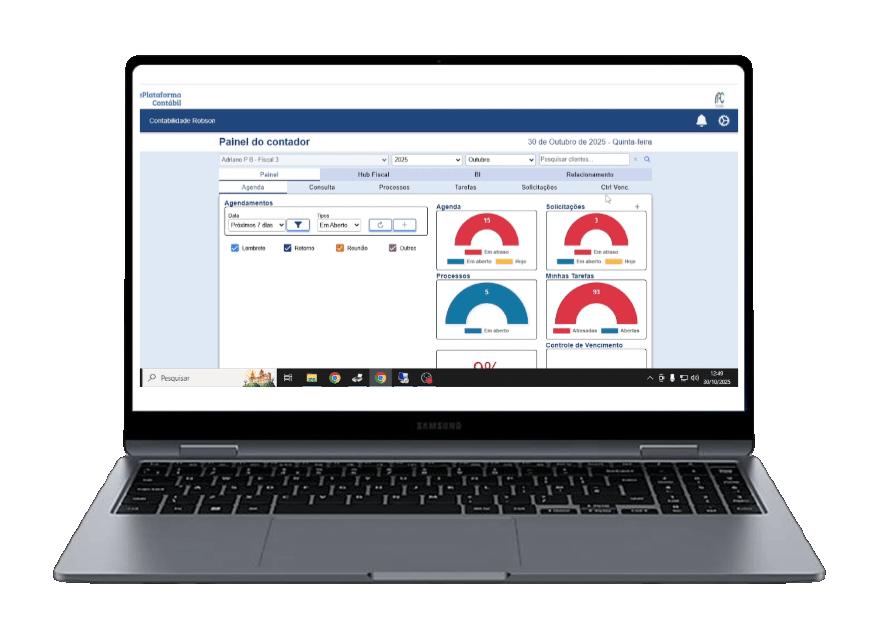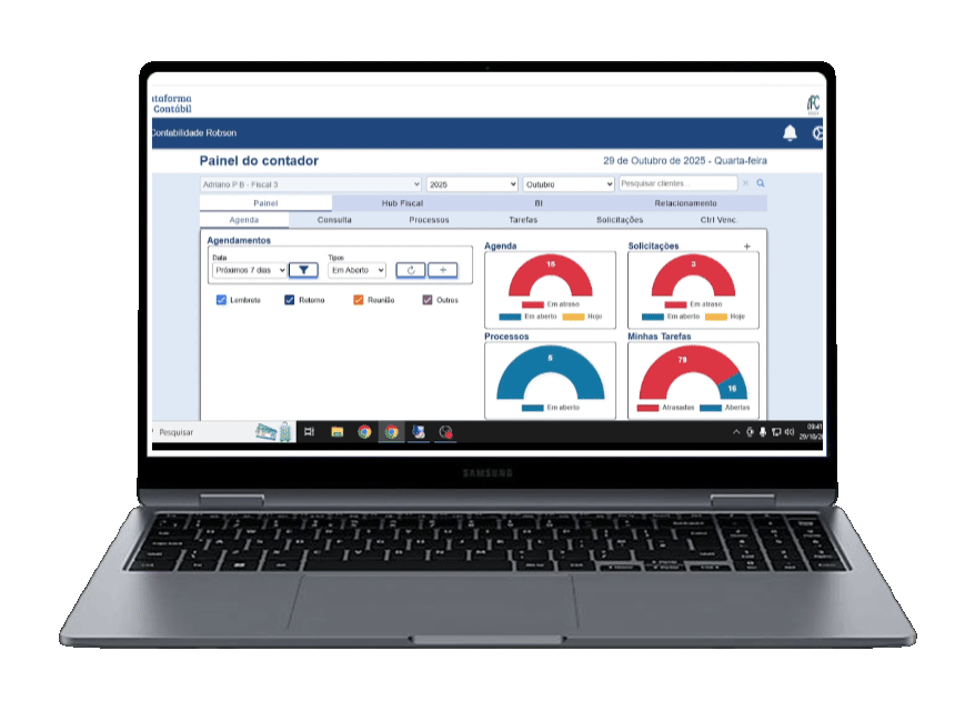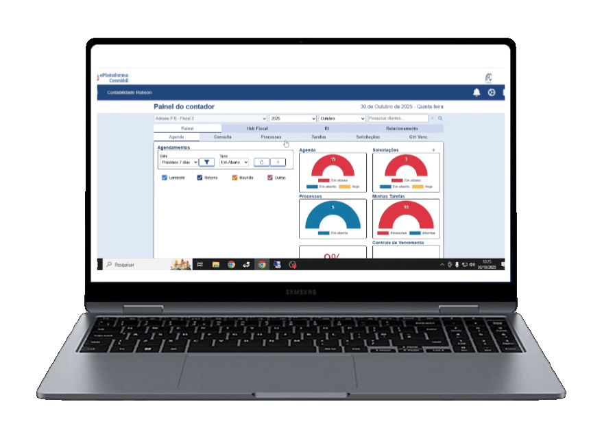 Controle de contas a pagar e receber, fluxo de caixa e conciliação de extratos, garantindo organização e agilidade na gestão financeira do seu cliente.